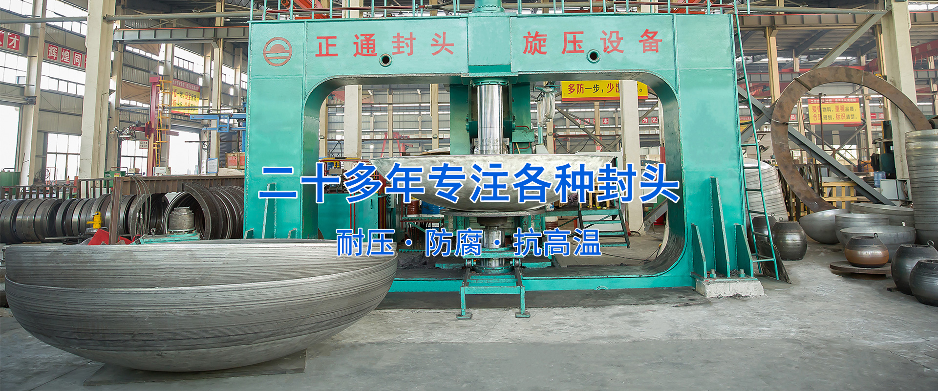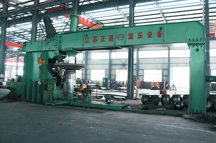 江蘇正通金屬封頭有限公司(原溫州正通金屬封頭有限公司)地處江蘇省泰州市興化市張郭鎮,毗鄰寧靖鹽高速、泰州火車站、揚州泰州機場,交通便利。公司占地面積40000平方米,建筑面積27800平方米,總投資1.2億元人民幣,注冊資本5688萬元人民幣。主要設備有10000T,5000T,2000T,1000T,315T,250T,200T油壓機各一臺,800T,500T油壓機各兩臺, 4.2米、7.2米、11米壓鼓旋壓機組各一套,2米旋壓機、1.8米球體旋壓機各一臺,3米旋壓機兩臺、自動焊割設備多臺,以及相配套的退火爐,射線探傷機,理化檢測等輔助設備60多臺,是目前國內設備種類比較齊全的封頭專業生產廠家之一。
